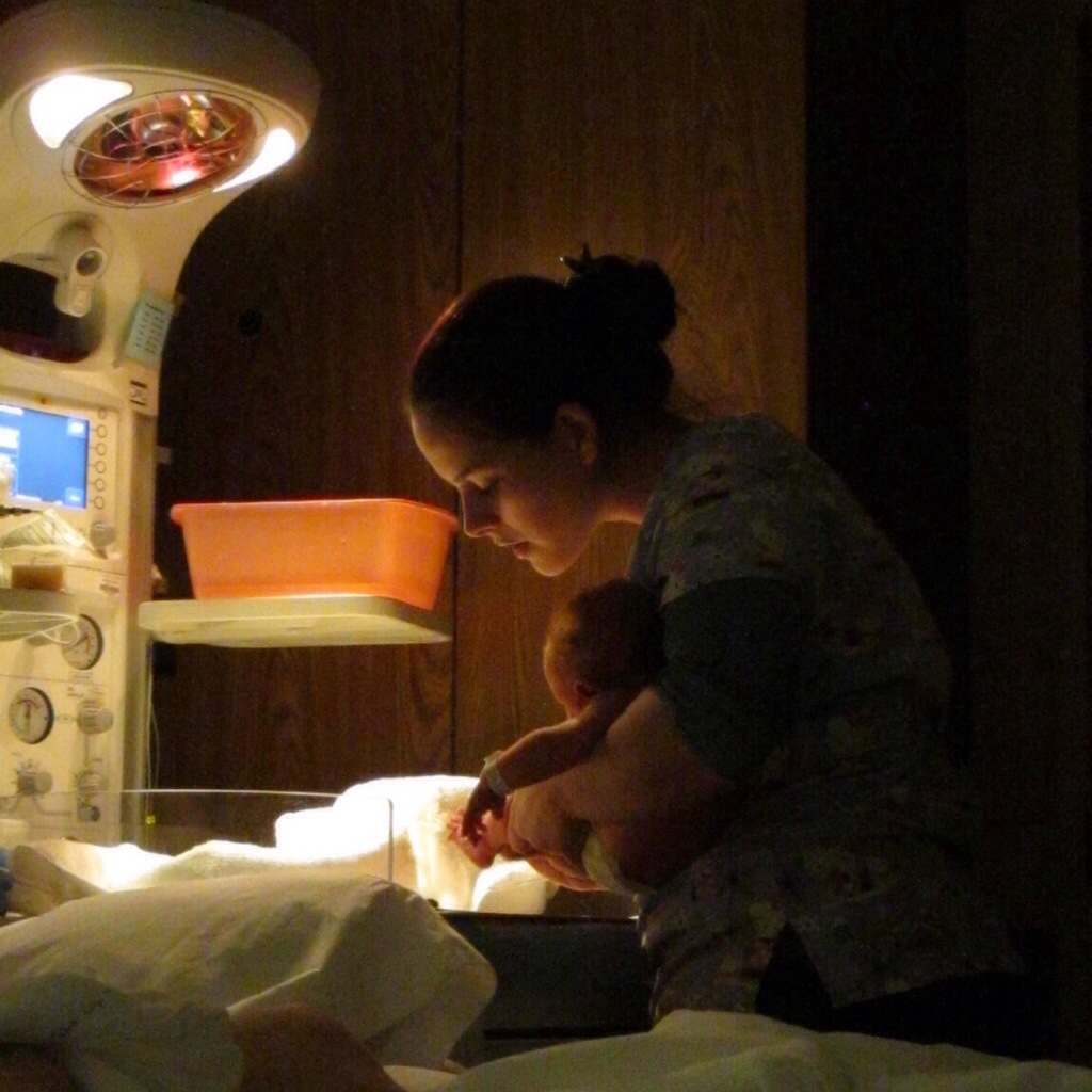 The nurses helped me hold him skin-to-skin and nurse even though I had just been stitched up. They were wonderful.